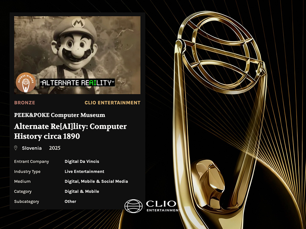 Our series of experimental AI videos from the domain of technological fiction has already won bronze in New York, silver in Paris and gold in Portorož. Today we add to that the Clio Awards bronze in Hollywood itself! The award was won in the Live & Entertainment/Digital & Mobile-Other category, for projects intended for live or virtual audiences: museums, performing arts, and theater.